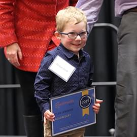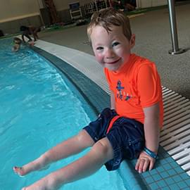 Nolan lives with his parents, David and Jessica, his brother and best friend Landon, and his cat Nia. They enjoy going on walks, bike rides, playing at parks and splash pads, spending time with grandpa and grandma, boating and reading. At the CDC Nolan loves swimming.